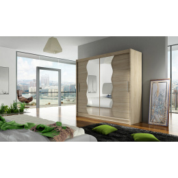Skříň Berger s posuvnými dveřmi, je vyrobena z kvalitního lamina o síle 16 mm a hrany jsou ukončeny ABS lištou. Vodící lišty jsou vyrobeny z odolného hliníku a splňují požadavky pro každodenní užívání. Skříň je doplněna vlnitými zrcadly, která jí dodávají elegantní vzhled a místnost opticky zvětší a prosvětlí. Nabízíme ji ve čtyřech odstínech. Díky svým rozměrům a uspořádání poskytuje dostatek úložného prostoru. Skříň je dodávána v demontu a součástí je montážní plánek včetně všech potřebných spojovacích materiálů. Vyobrazené dekorace nejsou v ceně.