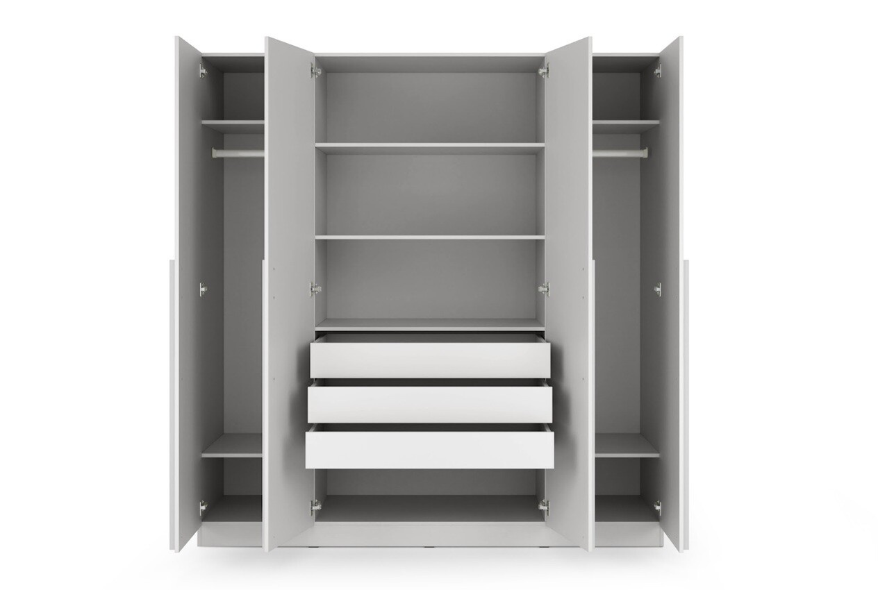 Tato 4-dveřová skříň nabízí dostatek úložného prostoru pro všechny vaše potřeby. S šířkou 200 cm, výškou 210 cm a hloubkou 60,5 cm poskytuje dostatek místa pro oblečení, obuv a další osobní věci. Klasické otvírání dveří zajišťuje snadný přístup ke všem vašim věcem.