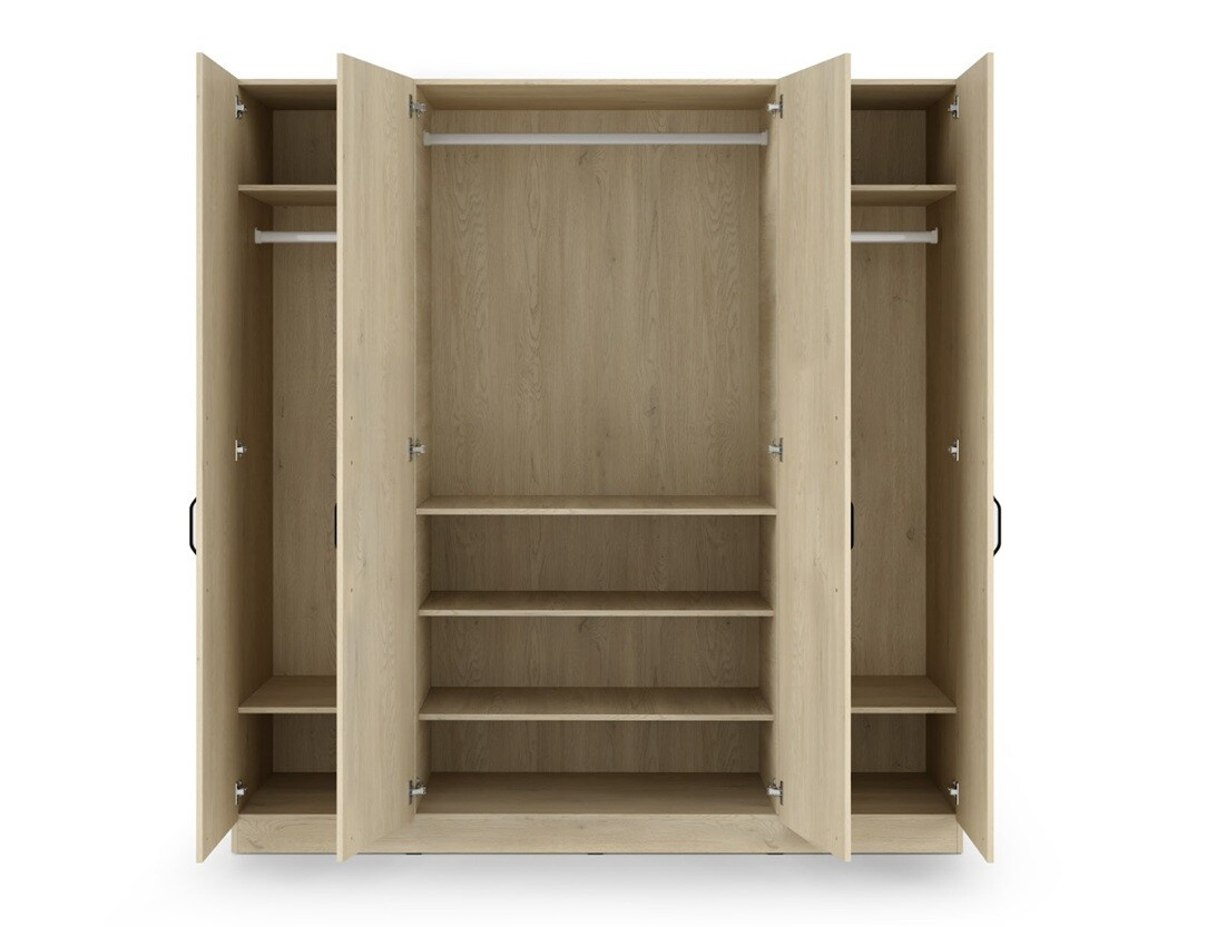 Tato skříň nabízí klasické otvírání, které je nejen praktické, ale také umožňuje snadný přístup k vašim věcem. S šířkou 200 cm, výškou 210 cm a hloubkou 60,5 cm poskytuje dostatek prostoru pro uložení oblečení, ložního prádla a dalších osobních věcí. Absence zrcadla na dveřích přidává na jednoduchosti a čistotě designu, což ocení zejména ti, kteří preferují minimalistický styl.
