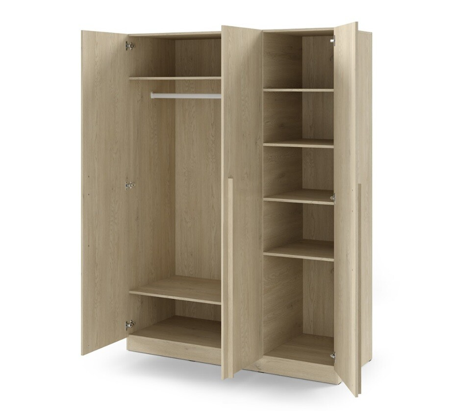 Tato 3-dveřová skříň nabízí dostatek úložného prostoru pro vaše oblečení, doplňky a další osobní věci. S šířkou 150 cm, výškou 210 cm a hloubkou 60,5 cm poskytuje dostatek místa pro organizaci vašeho šatníku. Klasické otvírání dveří umožňuje snadný přístup ke všem vašim věcem, aniž byste museli dělat kompromisy v prostoru.