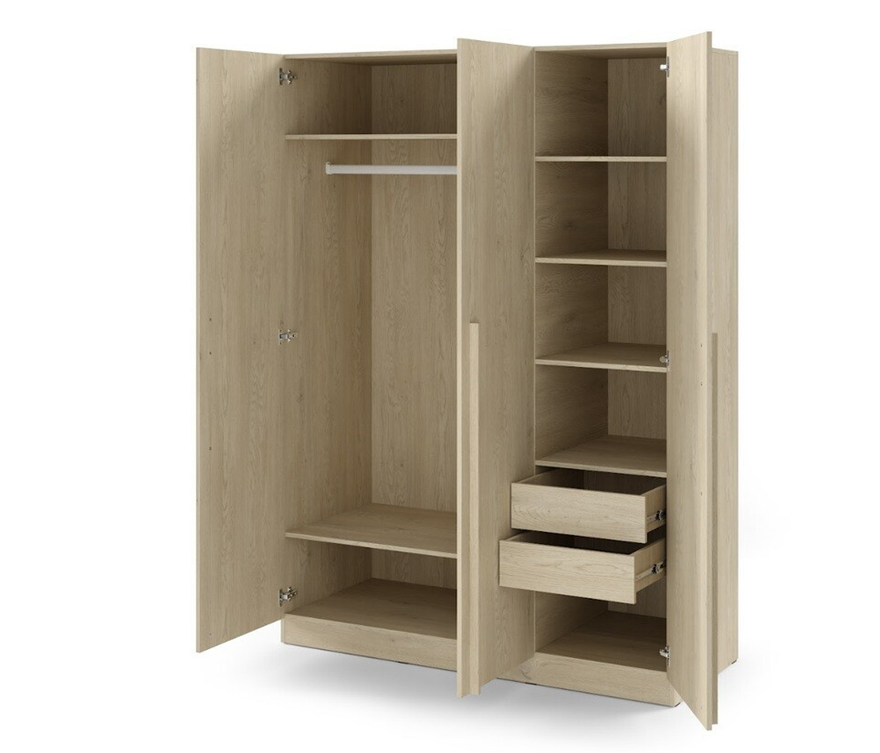 Skříň BRAGA 2 DC je 3-dveřová, což poskytuje dostatek prostoru pro uložení veškerého vašeho oblečení a dalších osobních věcí. S šířkou 150 cm, výškou 210 cm a hloubkou 60,5 cm nabízí tato skříň velkorysý úložný prostor, který uspokojí i ty nejnáročnější potřeby.