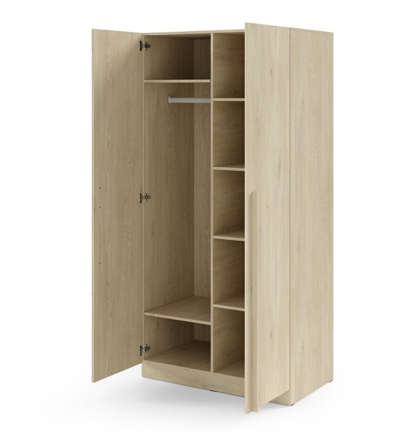 Tato 2-dveřová skříň nabízí klasické otvírání, které je nejen praktické, ale také přidává na eleganci celkového designu. Absence zrcadla na dveřích zajišťuje čistý a minimalistický vzhled, který se snadno integruje do jakéhokoli stylu interiéru.