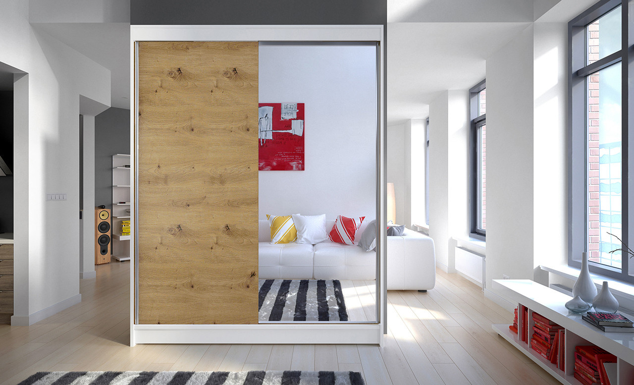 Šatní skříň CAMILA I 150, Bílá/Dub artisan