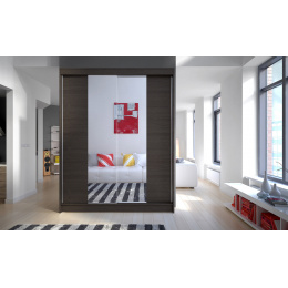 Skříň je vyrobena z kvalitního lamina. Díky svému vnitřnímu uspořádání nabízí dostatek úložného prostoru, posuvné dveře šetří prostor a zrcadlo ho opticky zvětšuje. Skříň je vhodná do ložnice, dětského nebo studentského pokoje, do předsíně i kanceláře. Vnitřní uspořádání skříně je vyobrazeno na fotografii. Skříň je dodávána v demontu. Součástí jsou i skleněná zrcadla, která jsou nalepena na dveřích skříně a také montážní plánek včetně všech potřebných spojovacích materiálů. Vyobrazené dekorace nejsou v ceně.