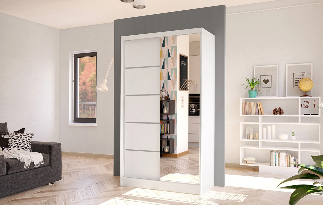 Korpus i dveře jsou vyrobeny z odolné 16 mm laminované desky s ABS hranami, které zajišťují dlouhou životnost. Posuvné dveře se hladce pohybují po hliníkových vodicích lištách. Skříň je dostupná v několika atraktivních barevných provedeních, takže ji snadno sladíte s ostatním nábytkem.