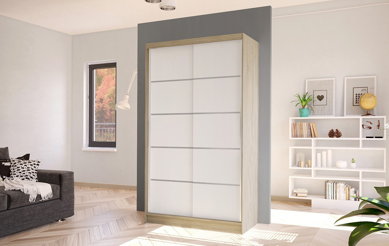 Korpus i dveře jsou vyrobeny z odolné 16 mm laminované desky s ABS hranami, které zajišťují dlouhou životnost. Posuvné dveře se hladce pohybují po hliníkových vodicích lištách. Skříň je dostupná v několika atraktivních barevných provedeních, takže ji snadno sladíte s ostatním nábytkem.