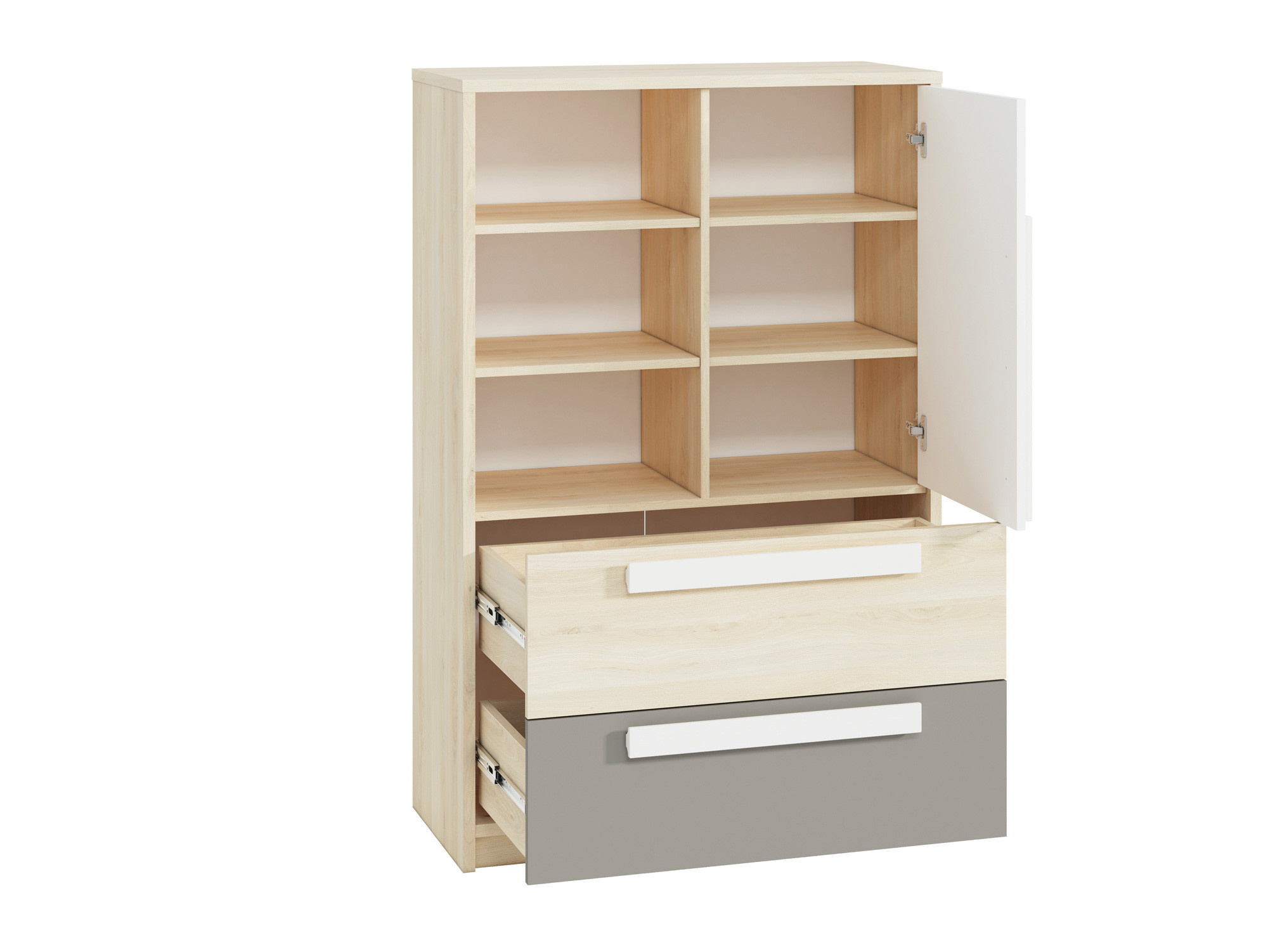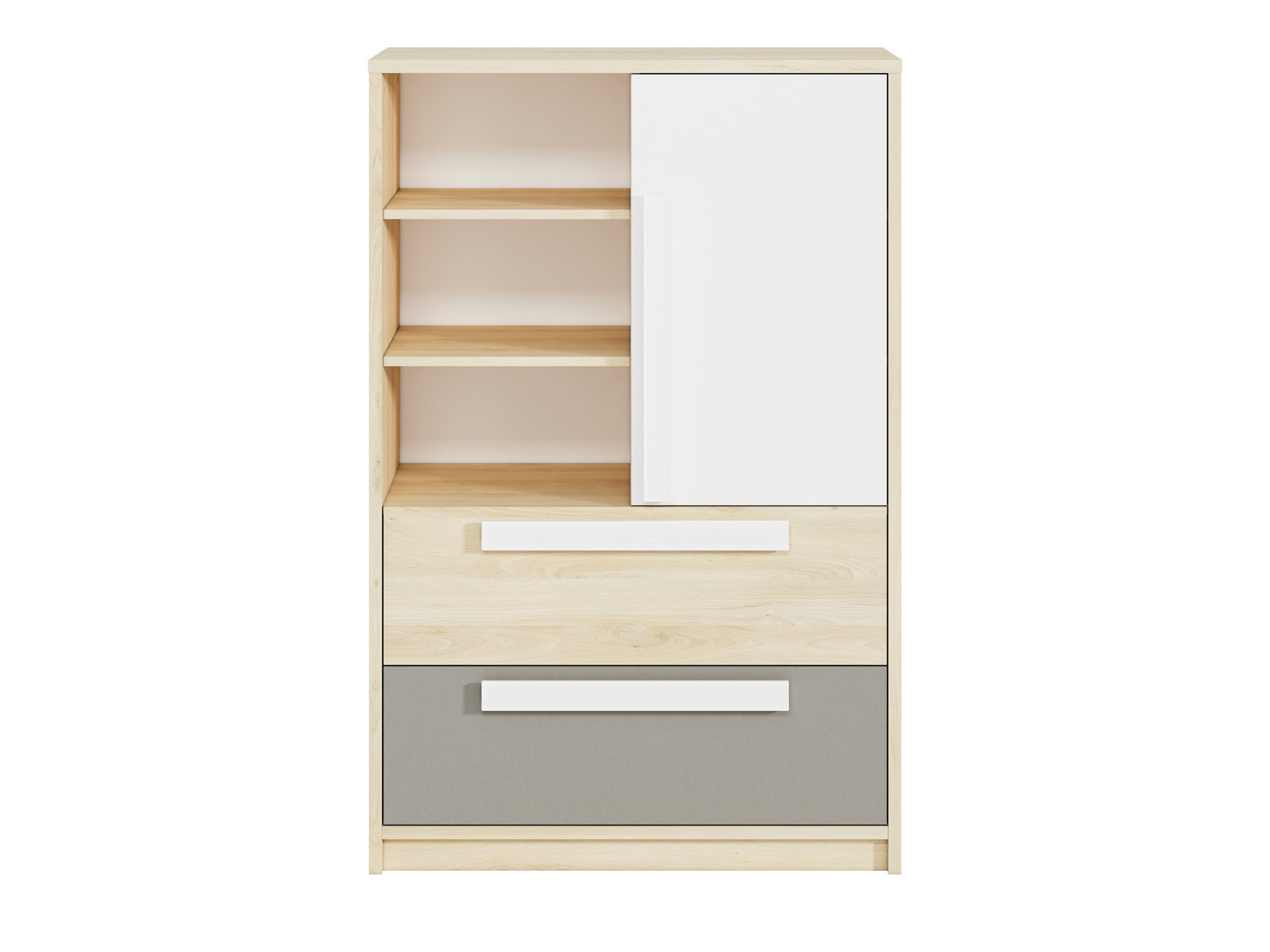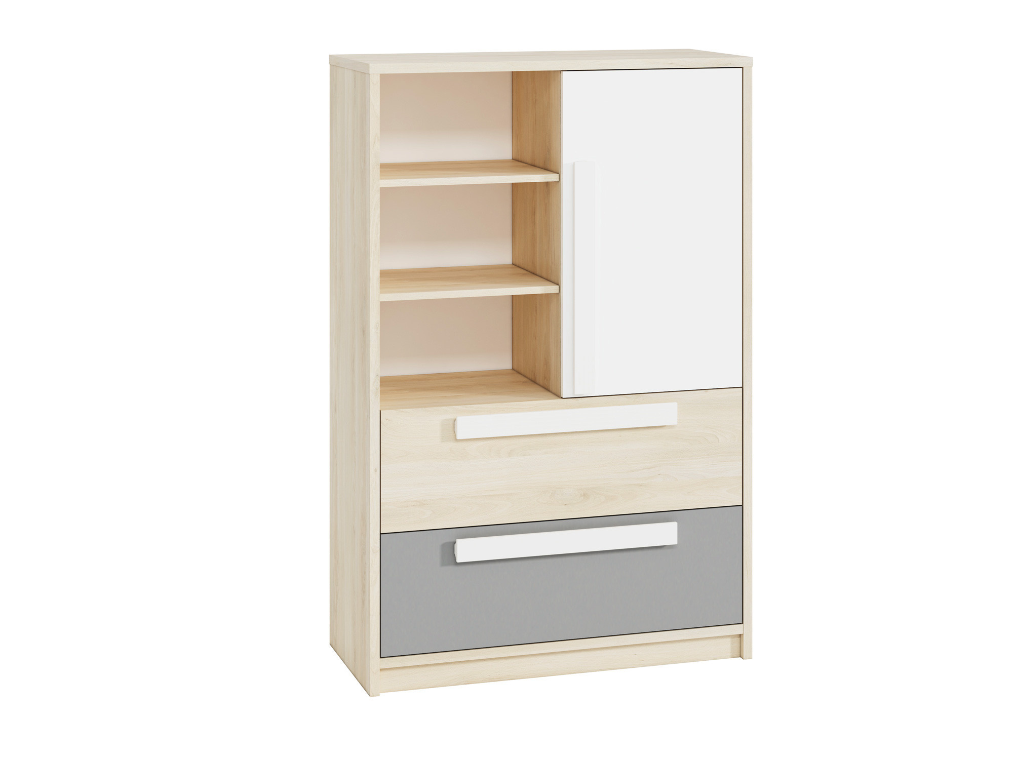 Komoda Drop 0701, Buk Fjord/Bílá/Šedá platina