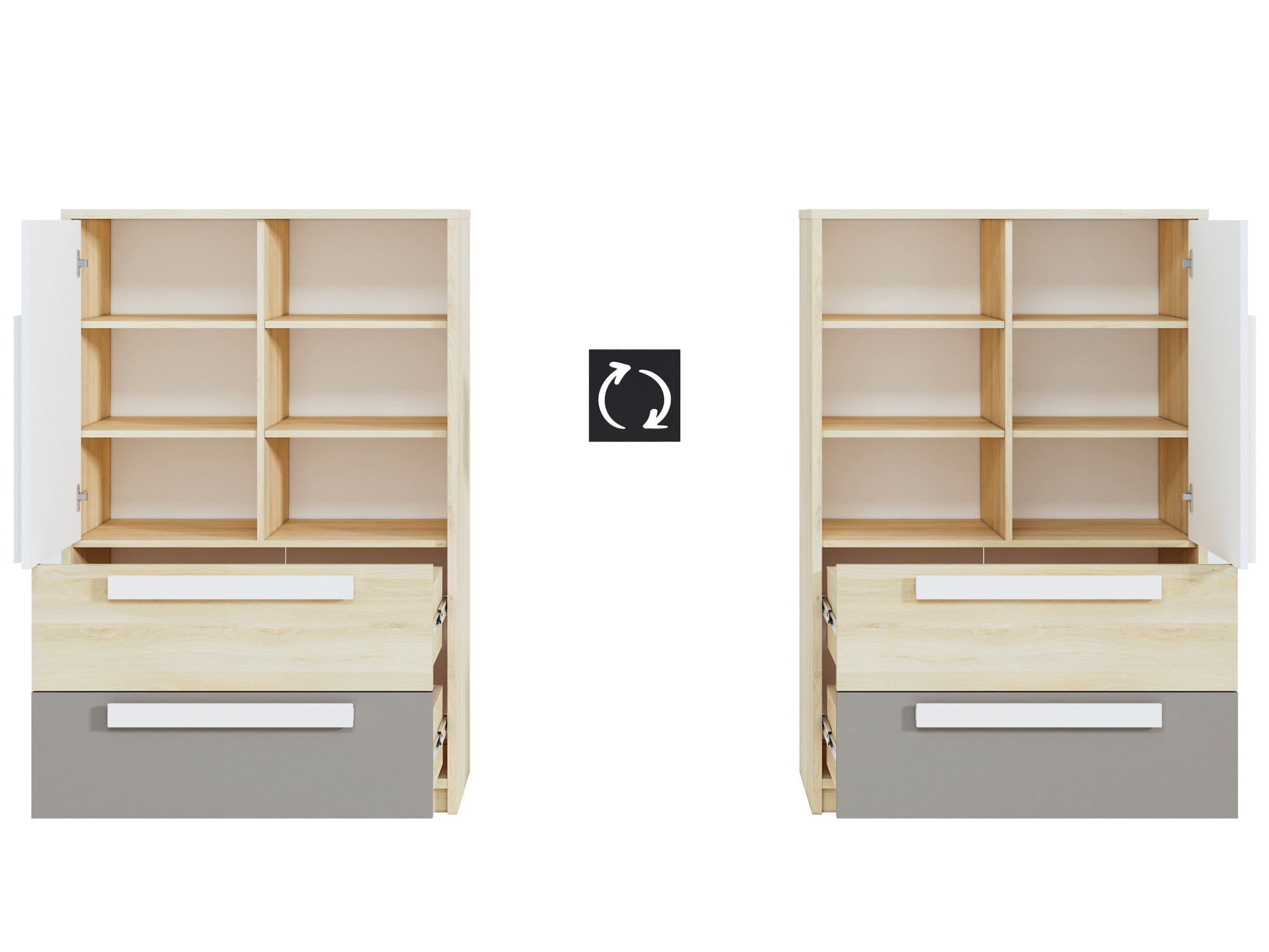 Velmi často - libovolné umístění kusu nábytku, určuje jeho nákup. Možnost libovolné montáže dvířek na pravou nebo levou stranu je faktorem, který umožní přizpůsobit nábytek Drop 07 individuálním potřebám. Objemné zásuvky byly navíc zesíleny a doplněny funkčními systémy s plným výsuvem. Dřevěné rukojeti jsou hranaté a přátelské k našemu dítěti. Tělo je zcela bezpečné a vyvážené.