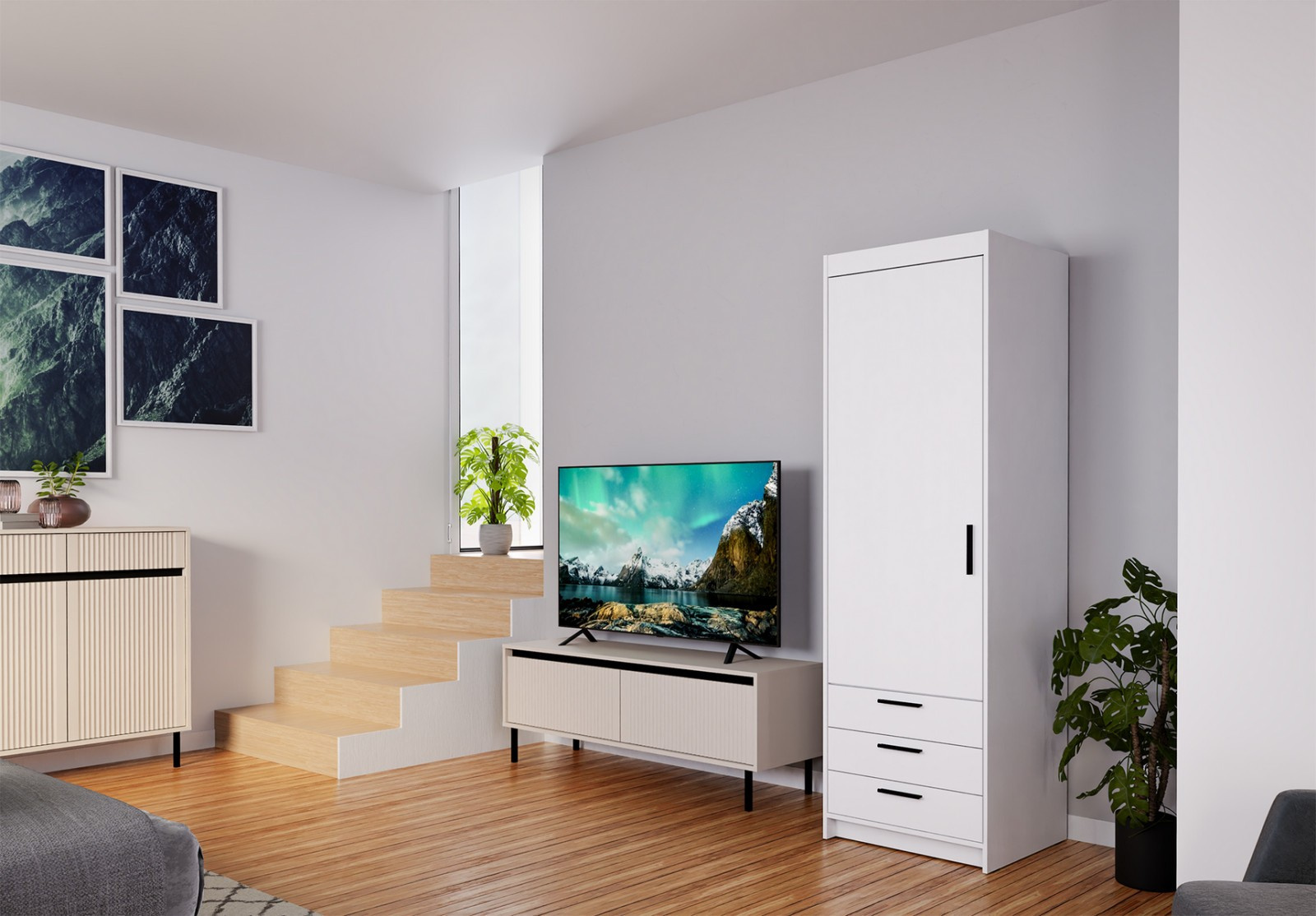 Šatní skříň Enja je vyrobena z kvalitního lamina tl.15 mm, které je odolné a snadné na údržbu. Vnitřní uspořádání skříně je praktické a poskytuje dostatek úložného prostoru. Své uplatnění najde v ložnici, předsíni i v dětském pokoji. Ke skříni lze dokoupit nádstavec. Skříň je dodávaná v demontu a nabízíme ji ve několika barevných provedeních. Součástí balení je montážní plánek včetně všech potřebných spojovacích materiálů.