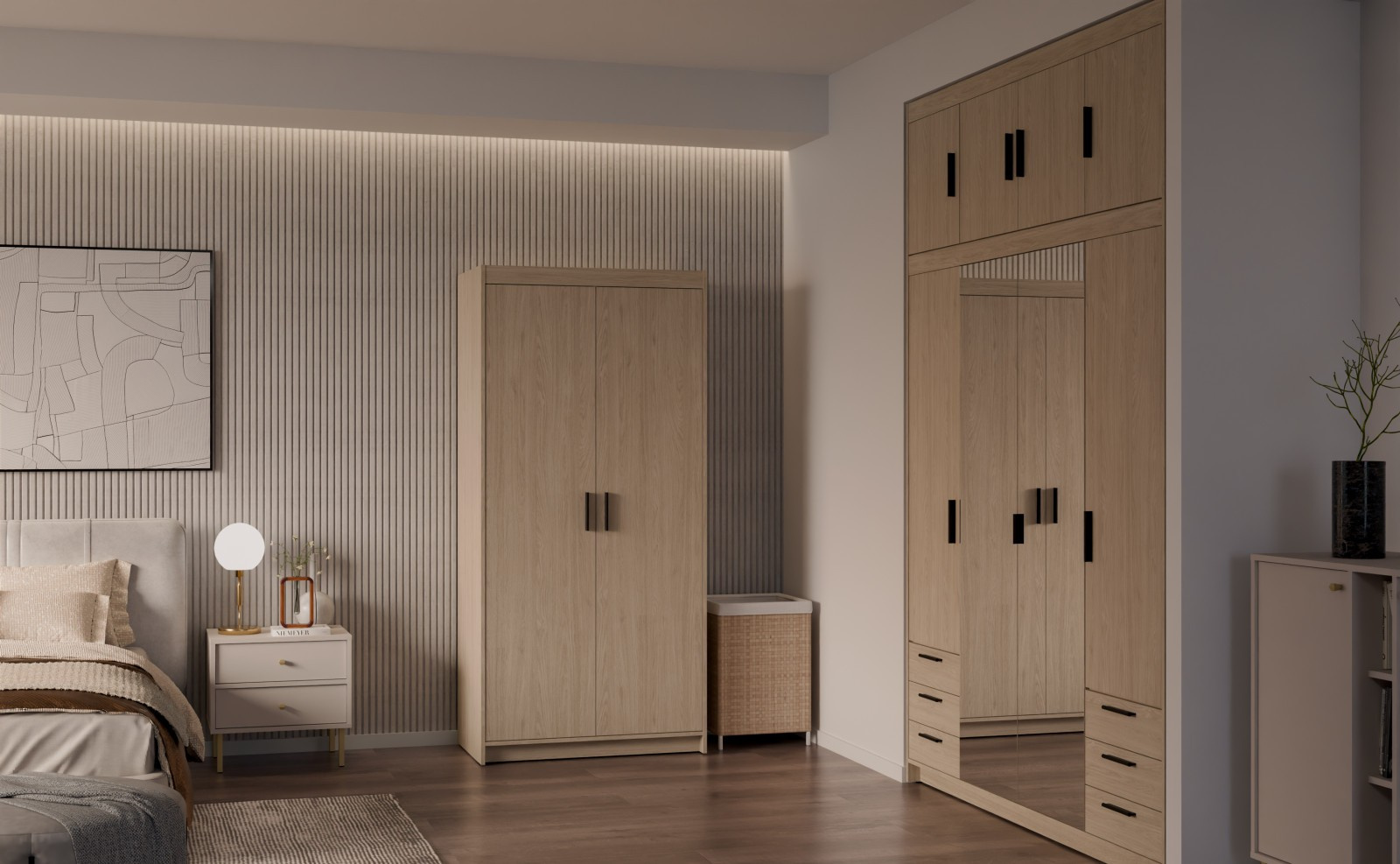 Šatní skříň Enja je vyrobena z kvalitního lamina, které je odolné a snadné na údržbu. Vnitřní uspořádání skříně je praktické a poskytuje dostatek úložného prostoru. Své uplatnění najde v ložnici, předsíni i v dětském pokoji. Ke skříni lze dokoupit nástavec. Skříň je dodávaná v demontu a nabízíme ji ve několika barevných provedeních. Součástí balení je montážní plánek včetně všech potřebných spojovacích materiálů.