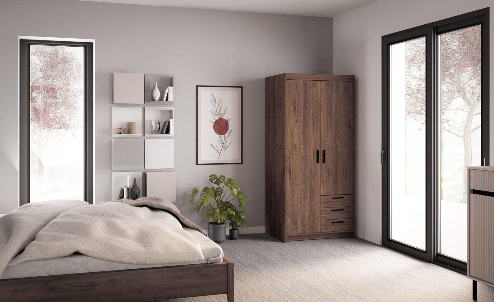 Šatní skříň Enja je vyrobena z kvalitního lamina tl.15 mm, které je odolné a snadné na údržbu. Vnitřní uspořádání skříně je praktické a poskytuje dostatek úložného prostoru. Své uplatnění najde v ložnici, předsíni i v dětském pokoji. Ke skříni lze dokoupit nádstavec. Skříň je dodávaná v demontu a nabízíme ji ve několika barevných provedeních. Součástí balení je montážní plánek včetně všech potřebných spojovacích materiálů.