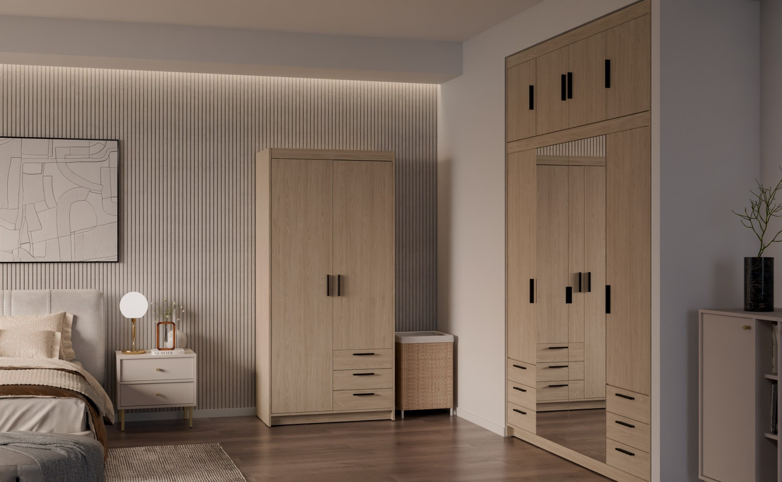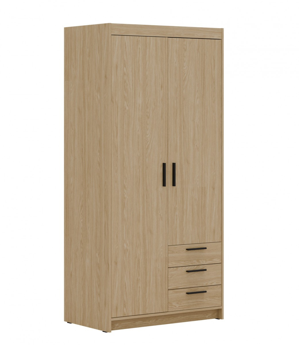 Šatní skříň Enja je vyrobena z kvalitního lamina tl.15 mm, které je odolné a snadné na údržbu. Vnitřní uspořádání skříně je praktické a poskytuje dostatek úložného prostoru. Své uplatnění najde v ložnici, předsíni i v dětském pokoji. Ke skříni lze dokoupit nádstavec. Skříň je dodávaná v demontu a nabízíme ji ve několika barevných provedeních. Součástí balení je montážní plánek včetně všech potřebných spojovacích materiálů.