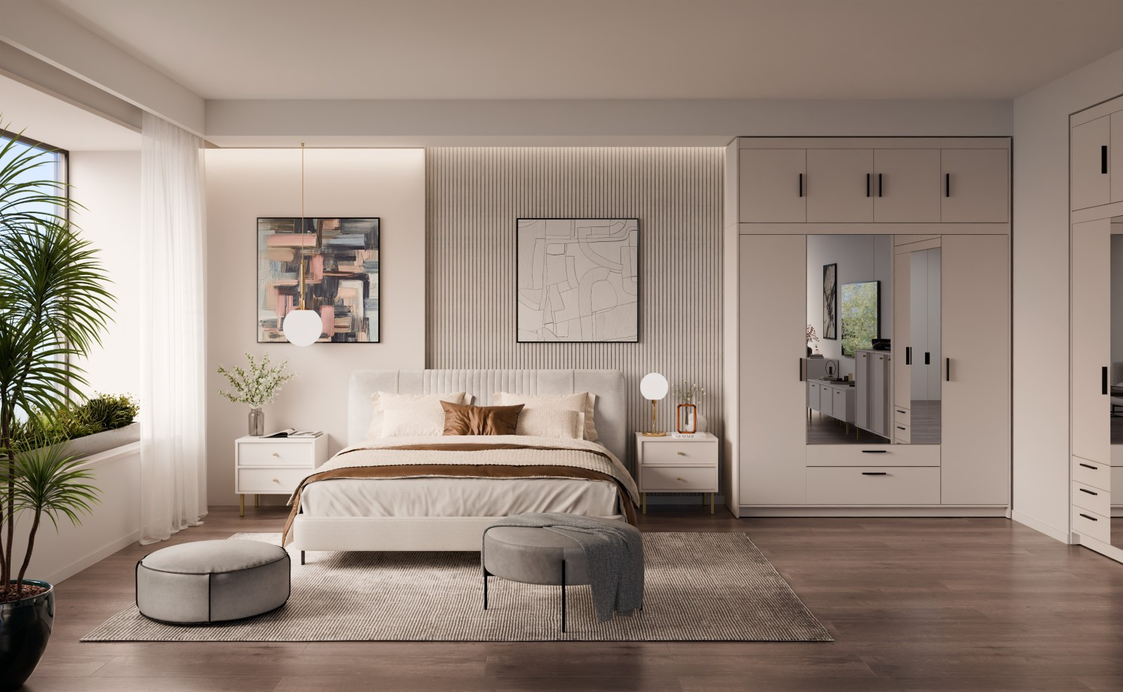 Skříň Enja 4D2S se zrcadlem písková béžová