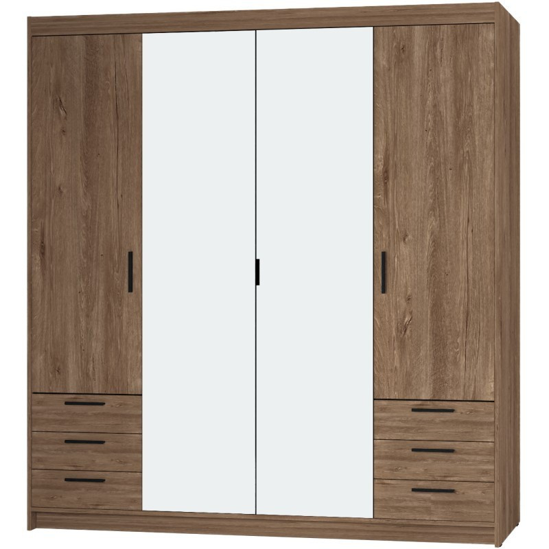 Šatní skříň Enja se zrcadlem je vyrobena z kvalitního lamina tl.15 mm, které je odolné a snadné na údržbu. Vnitřní uspořádání skříně je praktické a poskytuje dostatek úložného prostoru. Své uplatnění najde v ložnici, předsíni i v dětském pokoji. Ke skříni lze dokoupit nádstavec. Skříň je dodávaná v demontu a nabízíme ji ve několika barevných provedeních. Součástí balení je montážní plánek včetně všech potřebných spojovacích materiálů.