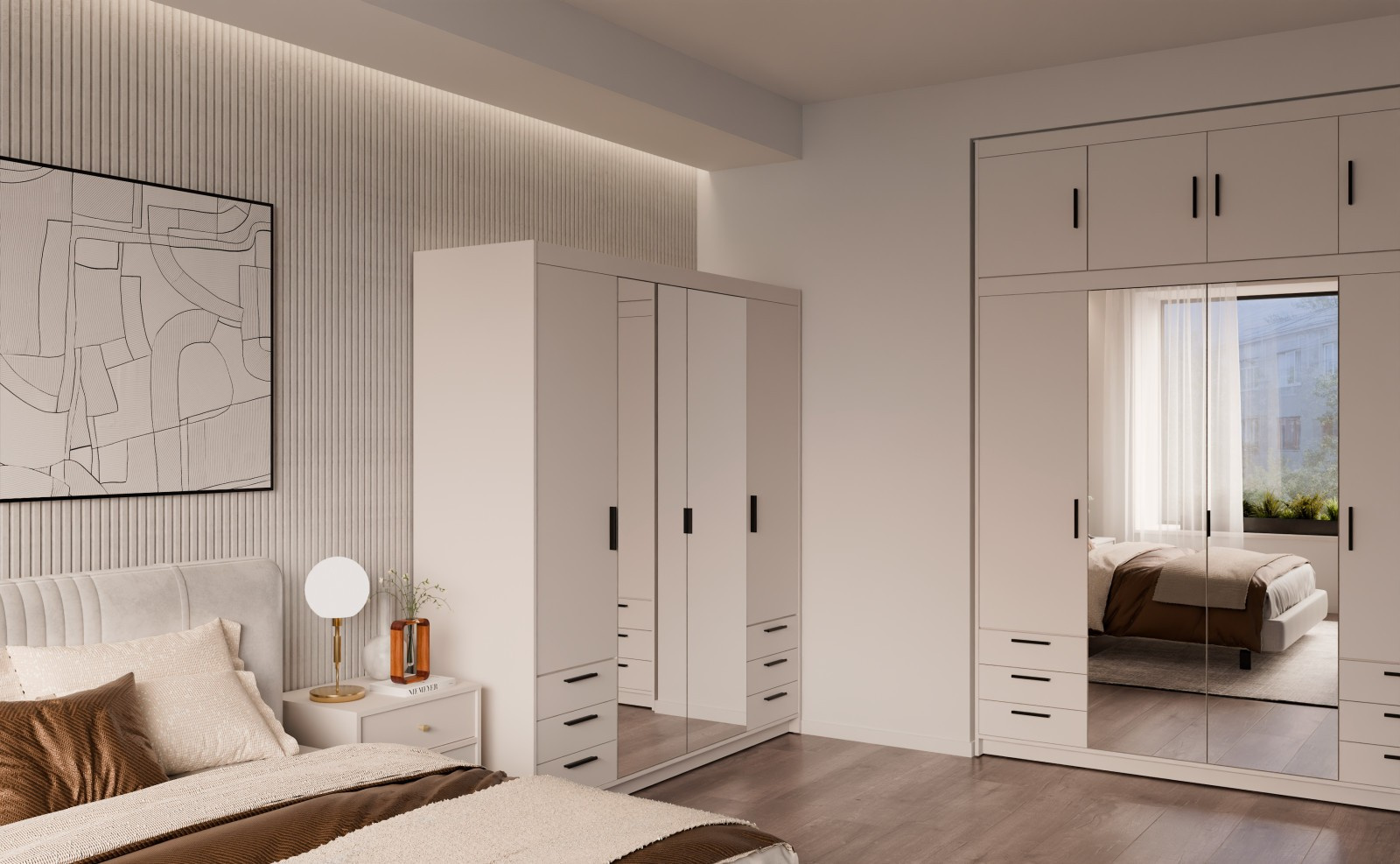 Skříň Enja 4D6S se zrcadlem písková béžová