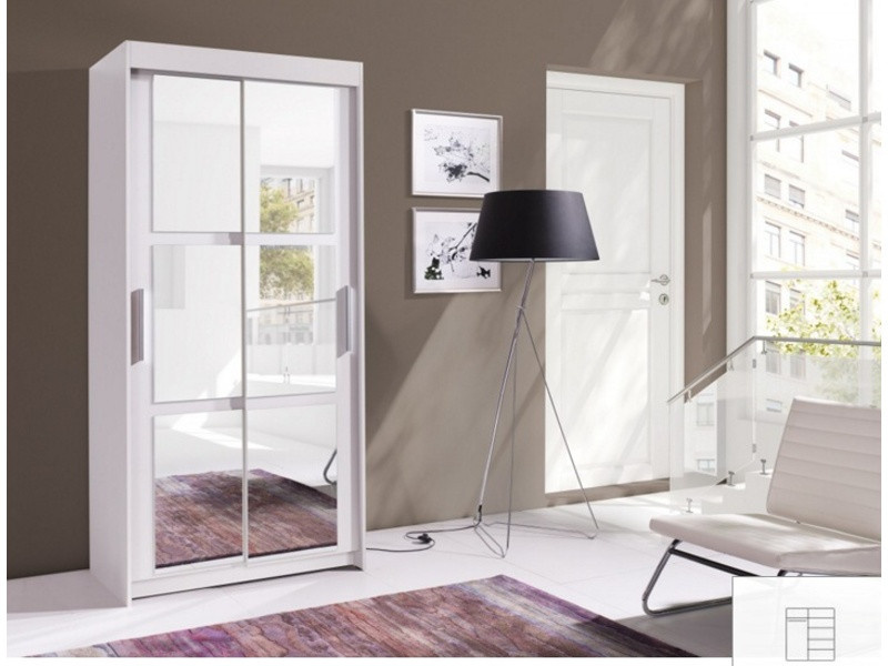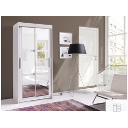 CARO - moderní šatní skříň s posuvnými dveřmi a zrcadlem v barvě bílé.