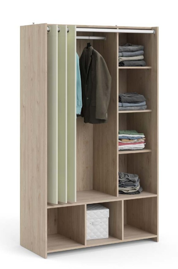 Série šatních skříní Harmony přináší praktické a originální řešení úložného prostoru. Dveře skříně jsou nahrazeny textilním závěsem. Skříň je vyrobená z kvalitního a snadno udržovatelného lamina. Skvěle se hodí do dětského nebo studentského pokoje, předsíně, kanceláře i domácí pracovny.