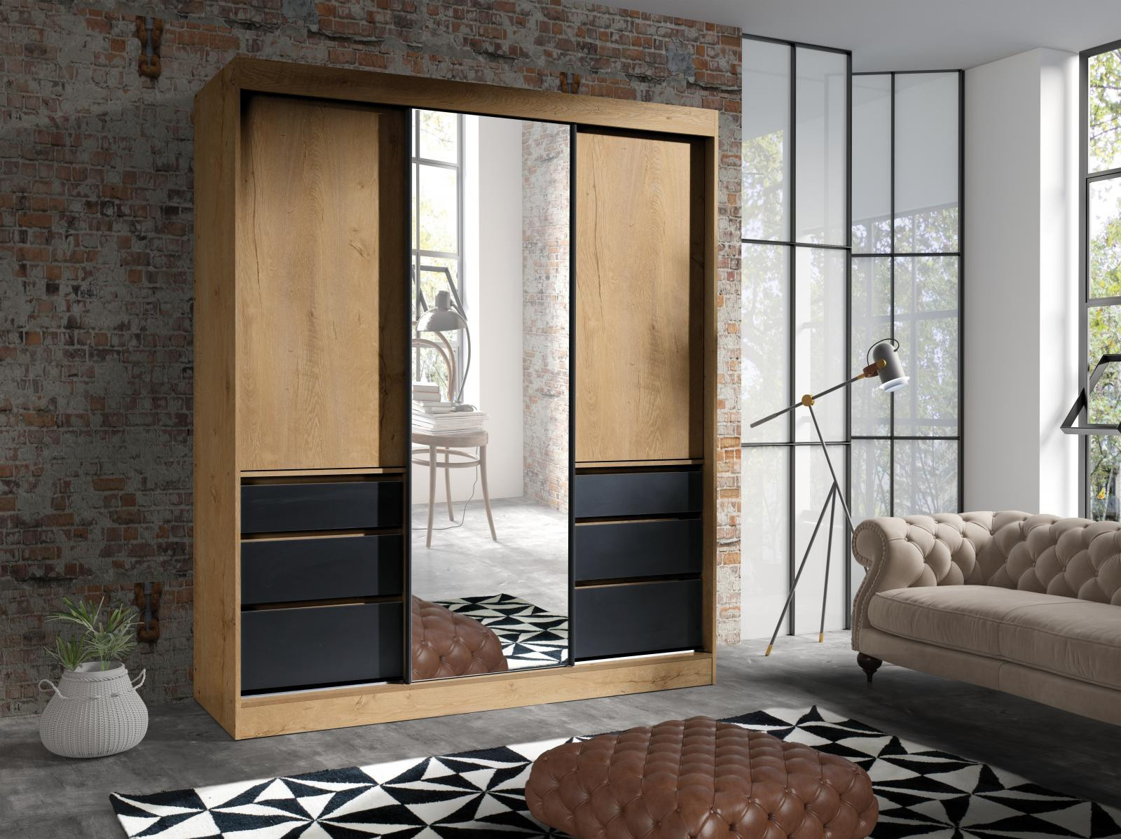 Šatní skříň Havana je vyrobena z kvalitního lamina, které je odolné a snadné na údržbu. Díky svému provedení s posuvnými dveřmi a třemi zásuvkami šetří místo. Zrcadlo na dveřích místnost opticky zvětší a prosvětlí. Vnitřní uspořádání skříně je praktické a poskytuje dostatek úložného prostoru. Skříň je dodávána v demontu a nabízíme ji ve několika barevných provedeních. Součástí balení je montážní plánek včetně všech potřebných spojovacích materiálů. Vyobrazené doplňky a dekorace nejsou v ceně