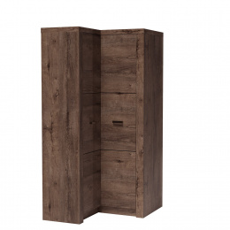 Rohová šatní skříň z kolekce Indianapolis. Nábytek je velmi prostorný, což vám poskytne možnost snadné organizace a správy prostoru. Levá strana má jednu polici a tyč, která umožňuje vyplnit prostor, který je pod tyčí. Pravá strana šatní skříně má čtyři police, které jsou ideální pro umístění oblečení, které lze složit. Šatní skříň dokonale zapadne do každého rohu a dodá místnosti teplo a šarm. K dispozici je možnost tří polic, které se přidají na levou stranu. Kovové úchytky podtrhují akcent nábytku. Možná je i obrácená varianta. K dostání ve třech barevných provedeních.