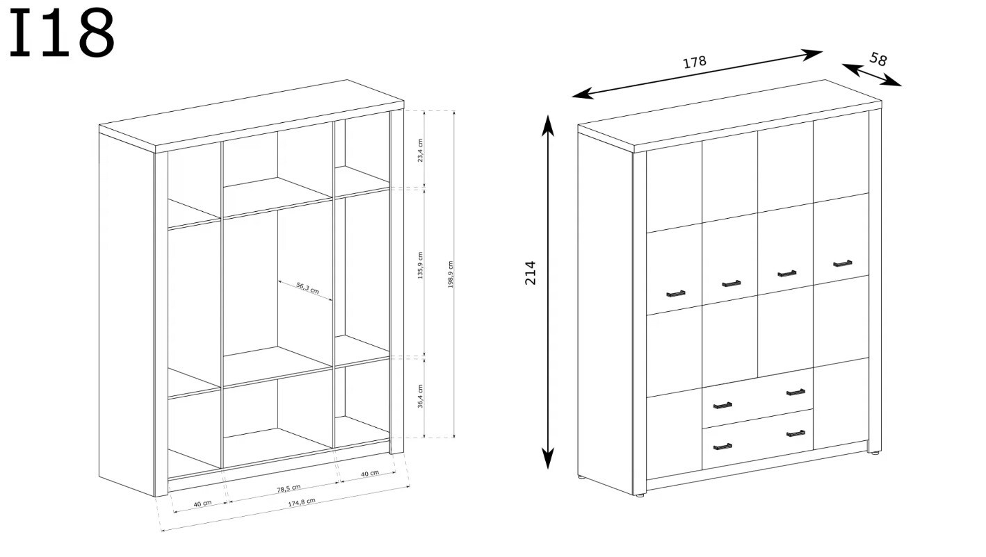 VELKÁ ŠATNÍ SKŘÍŇ SE ZÁSUVKAMI INDIANAPOLIS I-18