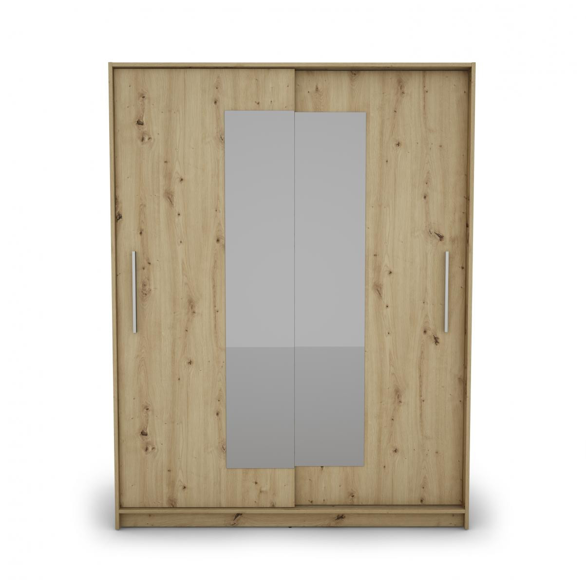 Skříň je vyrobena z kvalitního lamina. Díky svému vnitřnímu uspořádání nabízí dostatek úložného prostoru, posuvné dveře šetří prostor a zrcadlo ho opticky zvětšuje. Skříň je vhodná do ložnice, dětského nebo studentského pokoje, do předsíně i kanceláře. Vnitřní uspořádání skříně je vyobrazeno na fotografii. Skříň je dodávána v demontu. Součástí jsou i skleněná zrcadla, která jsou nalepena na dveřích skříně a také montážní plánek včetně všech potřebných spojovacích materiálů. Vyobrazené dekorace nejsou v ceně.
