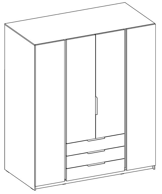 Šatní skříň Keny I v moderním designu má šířku 200 cm a je rozdělena na tři praktické části. Vnitřní uspořádání kombinuje závěsnou tyč, 11 polic a 3 šuplíky, což umožňuje přehledné a praktické rozdělení šatníku.