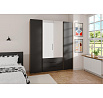 Šatní skříň Keny III v moderním designu má šířku 200 cm a je rozdělena na tři praktické části. Vnitřní uspořádání kombinuje závěsnou tyč, 11 polic a 3 šuplíky, což umožňuje přehledné a praktické rozdělení šatníku.
