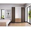 Šatní skříň Keny V v moderním designu má šířku 200 cm a je rozdělena na tři praktické části. Vnitřní uspořádání kombinuje závěsnou tyč, 11 polic a 3 šuplíky, což umožňuje přehledné a praktické rozdělení šatníku.