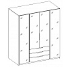 Šatní skříň Keny VI v moderním designu má šířku 200 cm a je rozdělena na tři praktické části. Vnitřní uspořádání kombinuje závěsnou tyč, 11 polic a 3 šuplíky, což umožňuje přehledné a praktické rozdělení šatníku.