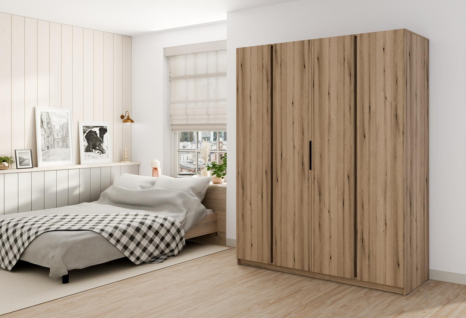 Šatní skříň Keny VII v moderním designu má šířku 200 cm a je rozdělena na tři praktické části. Vnitřní uspořádání kombinuje závěsnou tyč a 11 polic, což umožňuje přehledné a praktické rozdělení šatníku.