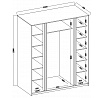 Šatní skříň Keny XIII v moderním designu má šířku 200 cm a je rozdělena na tři praktické části. Vnitřní uspořádání kombinuje závěsnou tyč a 11 polic, což umožňuje přehledné a praktické rozdělení šatníku.