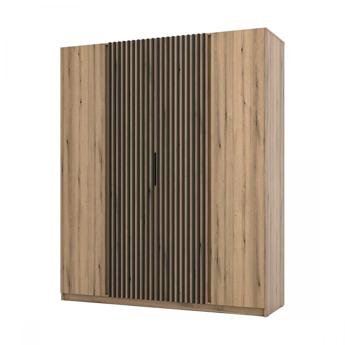 Šatní skříň Keny XIII v moderním designu má šířku 200 cm a je rozdělena na tři praktické části. Vnitřní uspořádání kombinuje závěsnou tyč a 11 polic, což umožňuje přehledné a praktické rozdělení šatníku.
