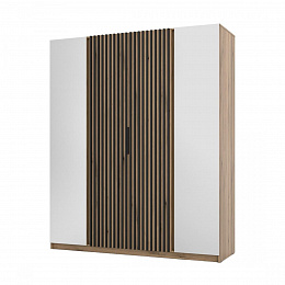 Šatní skříň Keny XIV v moderním designu má šířku 200 cm a je rozdělena na tři praktické části. Vnitřní uspořádání kombinuje závěsnou tyč a 11 polic, což umožňuje přehledné a praktické rozdělení šatníku.