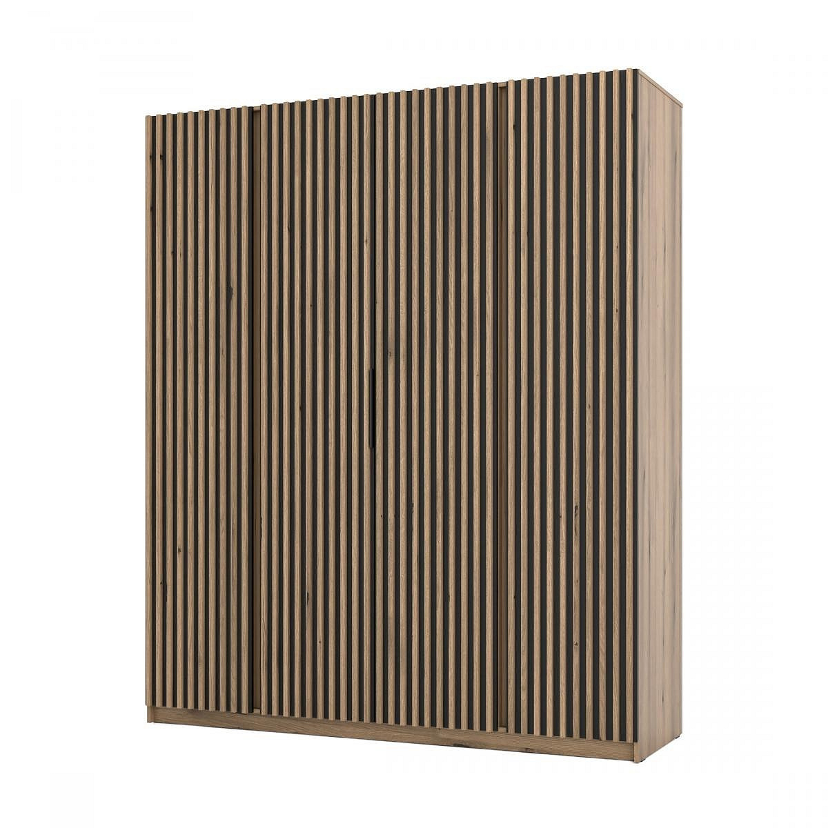 Šatní skříň Keny XV v moderním designu má šířku 200 cm a je rozdělena na tři praktické části. Vnitřní uspořádání kombinuje závěsnou tyč a 11 polic, což umožňuje přehledné a praktické rozdělení šatníku.