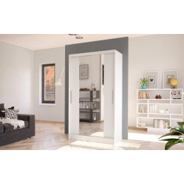 Šatní skříň Kosta II v moderním designu má šířku 100 cm a je rozdělena na dvě praktické části. Posuvné dveře šetří místo a usnadňují přístup do interiéru. Vnitřní uspořádání kombinuje závěsnou tyč a čtyři police, což umožňuje přehledné a praktické rozdělení šatníku.