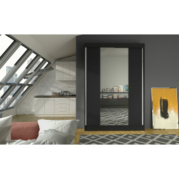 Skříň je vyrobena z kvalitního lamina. Díky svému vnitřnímu uspořádání nabízí dostatek úložného prostoru, posuvné dveře šetří prostor a zrcadlo ho opticky zvětšuje. Skříň je vhodná do ložnice, dětského nebo studentského pokoje, do předsíně i kanceláře. Vnitřní uspořádání skříně je vyobrazeno na fotografii. Skříň je dodávána v demontu. Součástí jsou i skleněná zrcadla, která jsou nalepena na dveřích skříně a také montážní plánek včetně všech potřebných spojovacích materiálů. Vyobrazené dekorace nejsou v ceně.