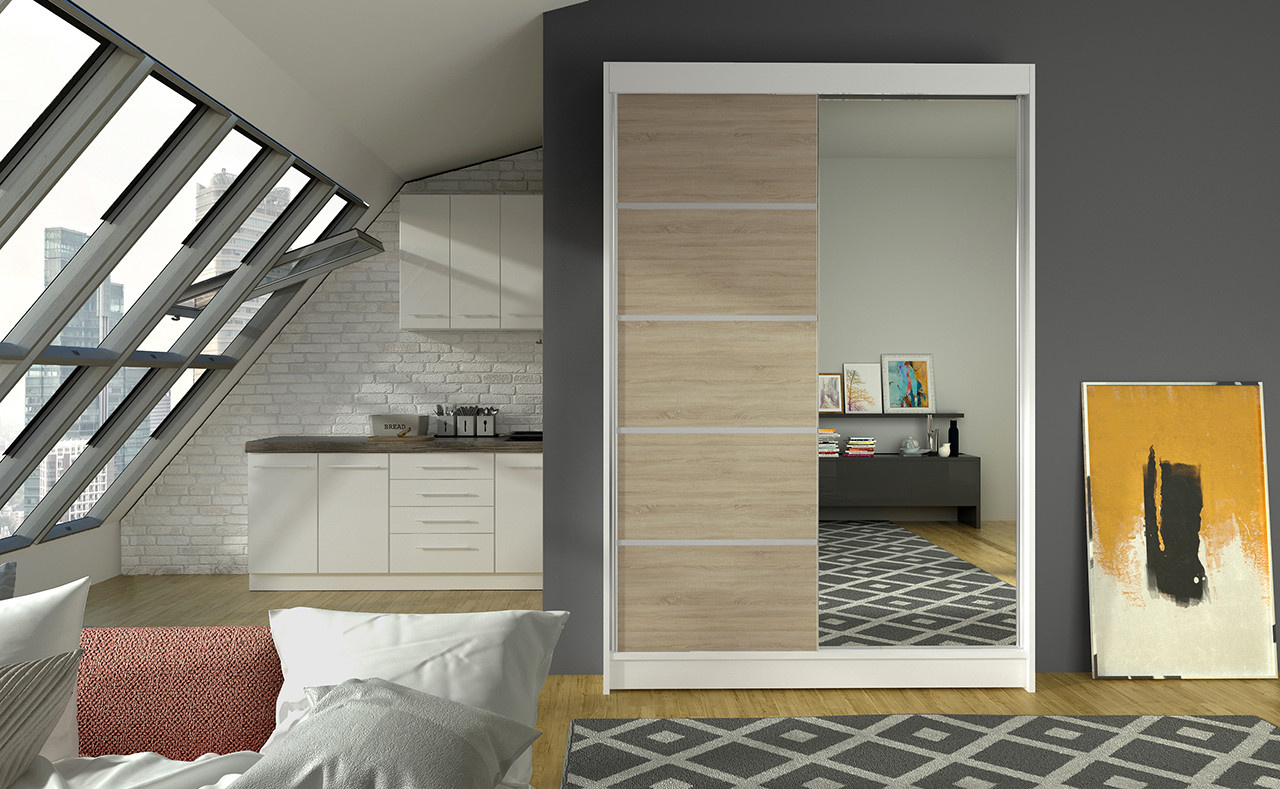 Šatní skříň LINORA III 120, Bílá/Dub sonoma