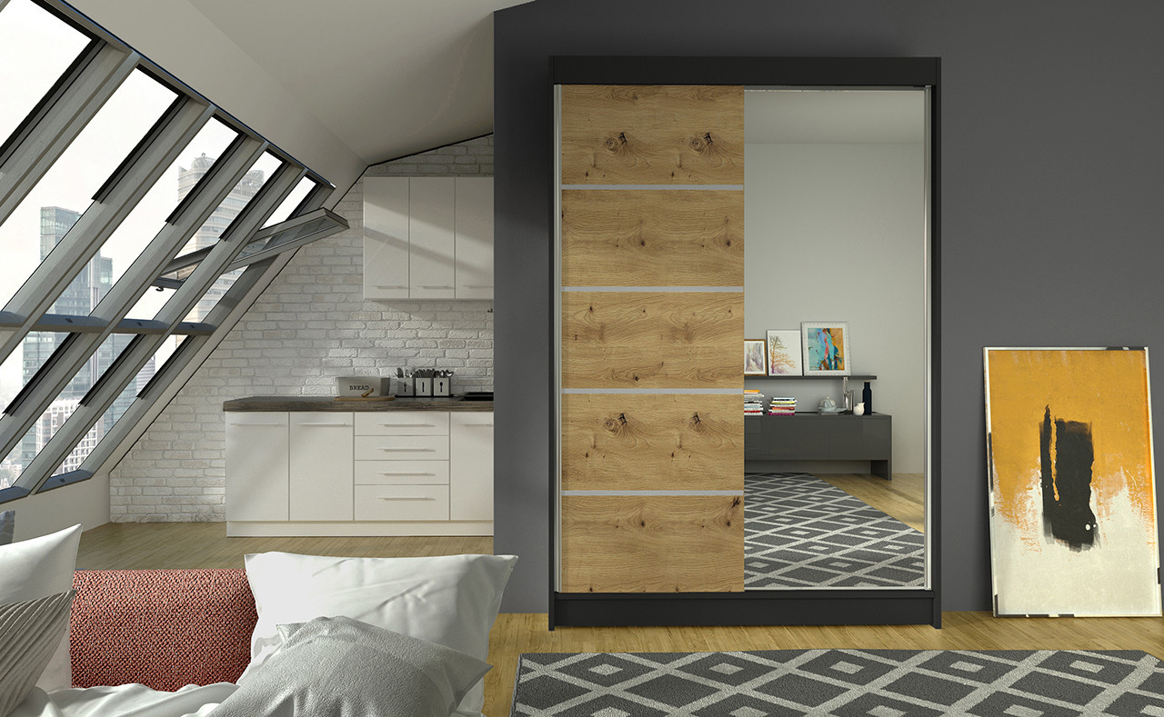 Šatní skříň LINORA III 120, Černá/Dub artisan