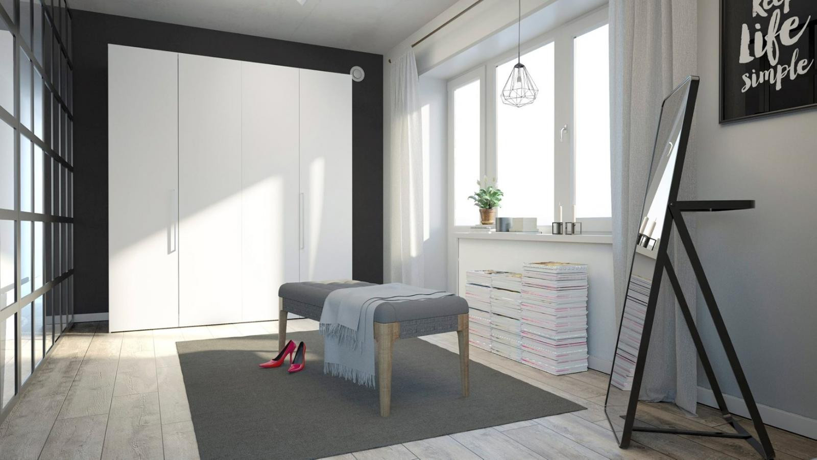 Šatní skříň Lutta je vyrobená v jednoduchém a nadčasovém skandinávském stylu, který se vyznačuje jednoduchými liniemi. Při výrobě je kladen důraz na ekologii, takže je vyráběna v souladu s ohledy na životní prostředí. Své uplatnění najde nejen v ložnici, ale také v dětském nebo studentském pokoji, nebo v předsíni. Praktické členění skříně, které je vyobrazeno v doplňkových fotografiích, poskytuje dostatek úložného prostoru a pomůže Vám tak udržet ve Vašich věcech přehled a pořádek. Součástí skříně jsou také dvě zásuvky, které můžete využít např. na spodní prádlo. Skříň je dodávaná v demontu. Součástí balení je montážní návod včetně všech spojovacích prvků. Vyobrazené dekorace nejsou v ceně.