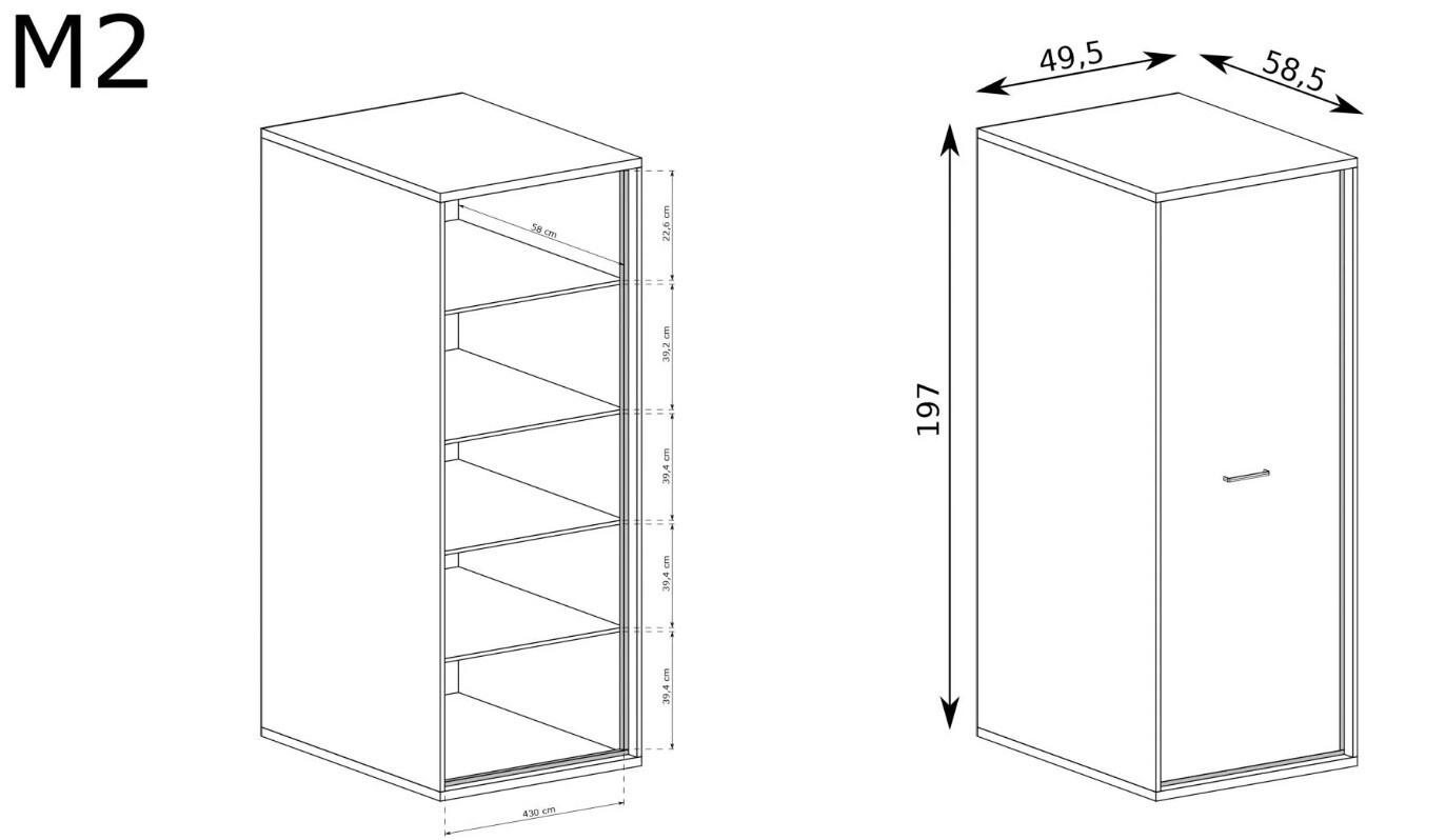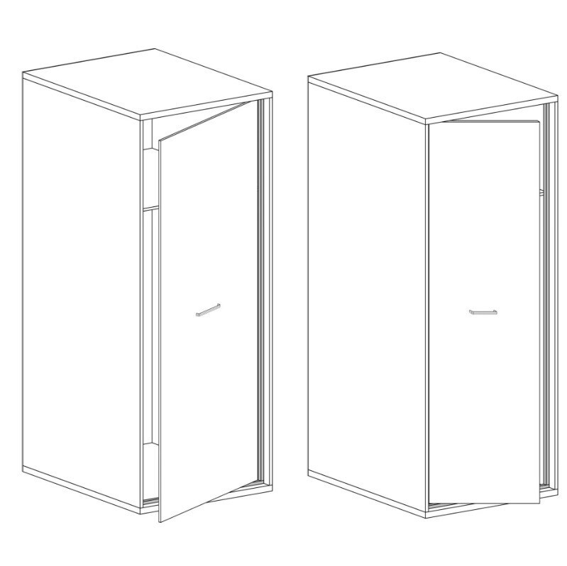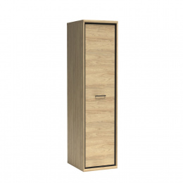 Šatní skříň jako skříň, na dlouhé šaty, tato skříň je ideální do každého interiéru, pokud máte nedostatek místa. Má tyč na zavěšení oblečení a hned nad ní jsme umístili praktickou polici v samém horním rohu skříně. Přírodní barva hikoru spolu s černými doplňky se hodí do každého interiéru, ale nejvíce se hodí do módního loftového stylu. Jako další možnost je možné přidat dovnitř police, v takovém případě se skříň stane funkční a jednoduchou.