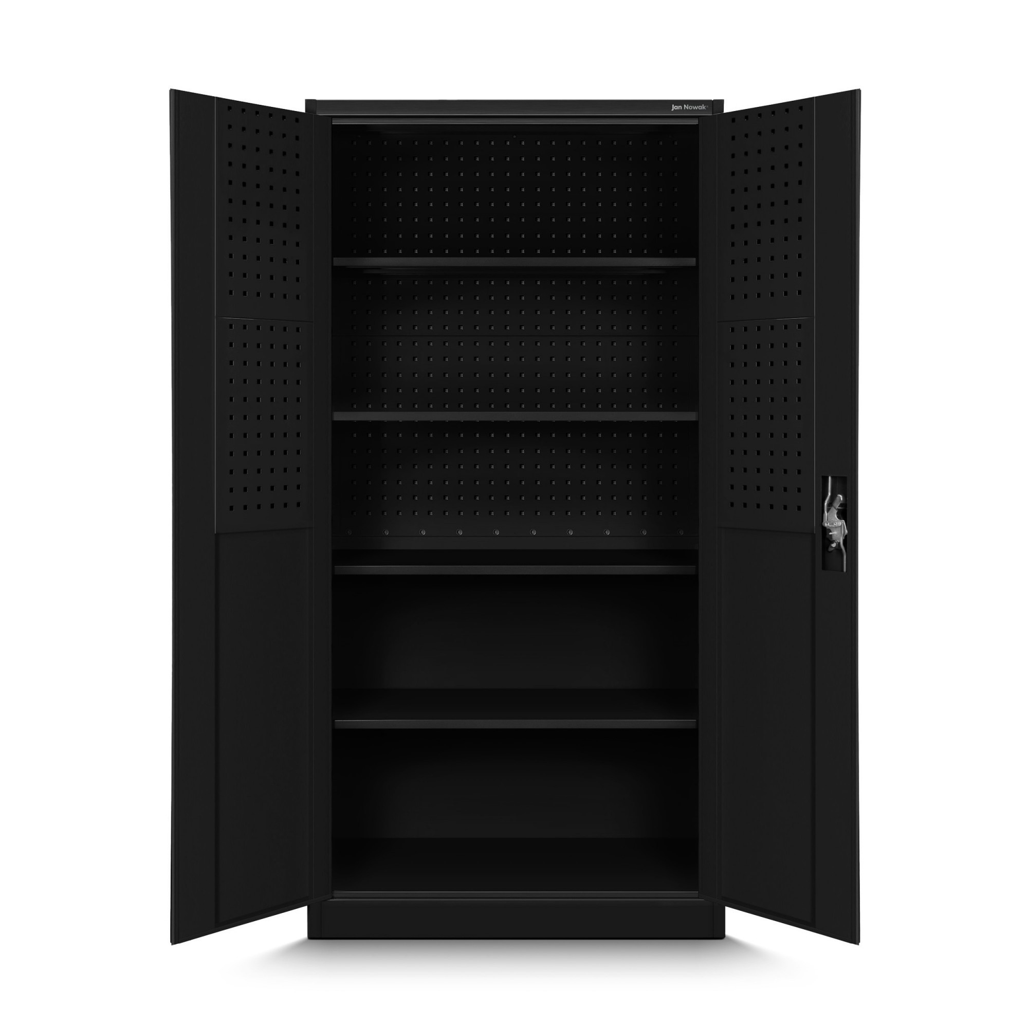 Skříň Bruno je vybavena 4 nastavitelnými policemi, které si můžete přizpůsobit podle svých potřeb. Díky perforovaným deskám s rozestupem 25 mm si můžete snadno nastavit výšku polic a vytvořit tak ideální prostor pro uložení nářadí různých velikostí. Nosnost každé police je úctyhodných 80 kg, takže se nemusíte bát uložit i těžší předměty.
