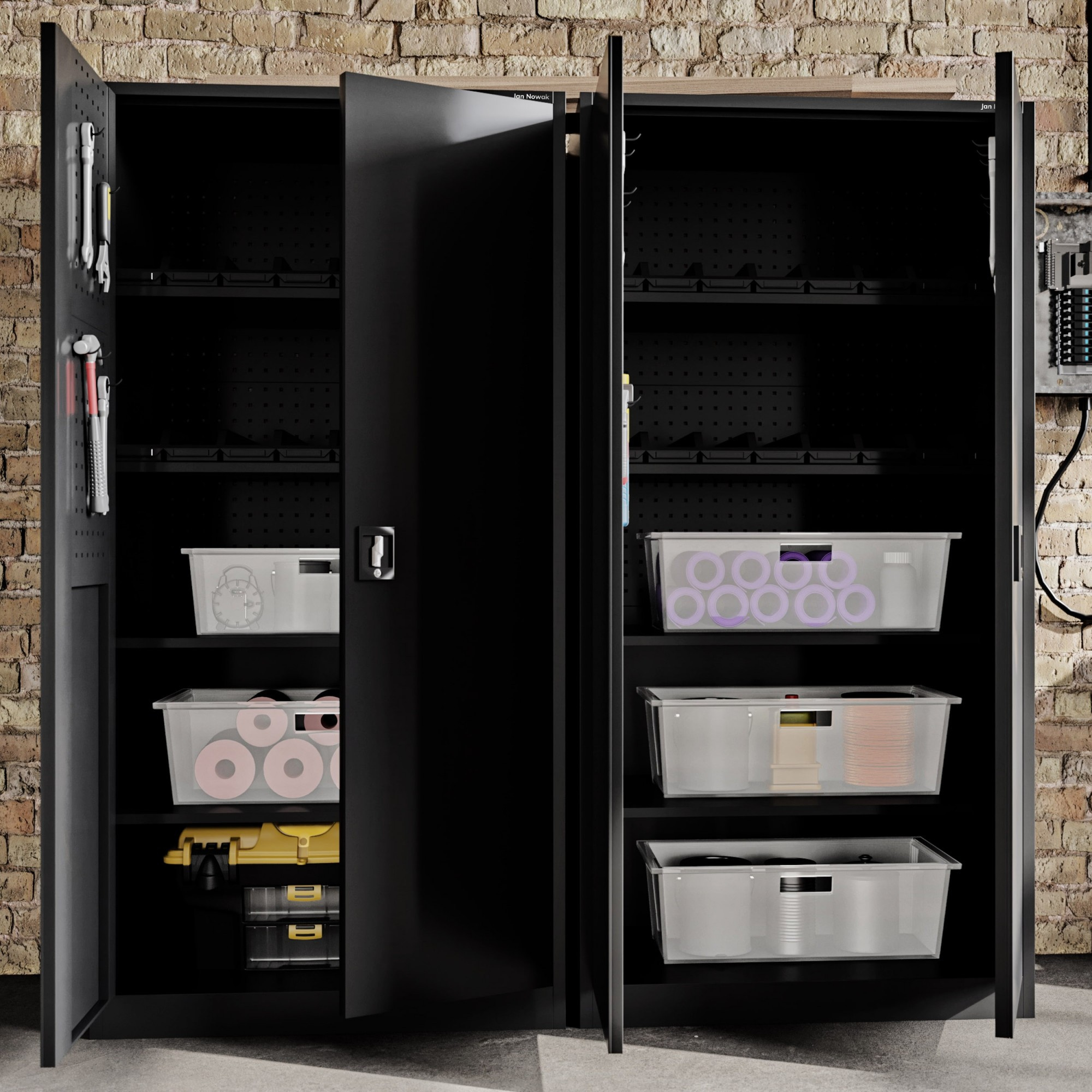 Skříň na nářadí Bruno je součástí kolekce All Black, která nabízí širokou škálu kovového nábytku v jednotném designu. Prohlédněte si i další produkty z této kolekce a vytvořte si dílnu, která bude nejen funkční, ale i skvěle vypadat. V nabídce naleznete skříně, skříňky, stoly, nástěnky na nářadí a vozíky – vše v elegantní černé barvě.