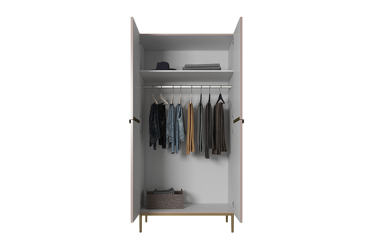 Šatní skříň Nicole 100 cm se 2 skrytými zásuvkami - starorůžová MDF / zlaté nožičky, šířka: 100, výška: 220, hloubka: 62, výška nožiček: 20