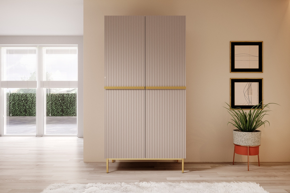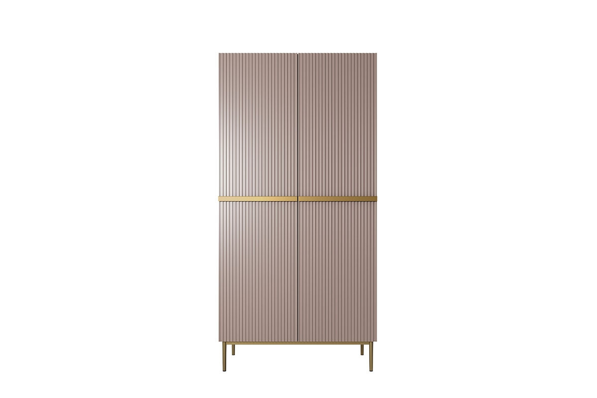 Šatní skříň Nicole 100 cm se 2 skrytými zásuvkami - starorůžová MDF / zlaté nohy