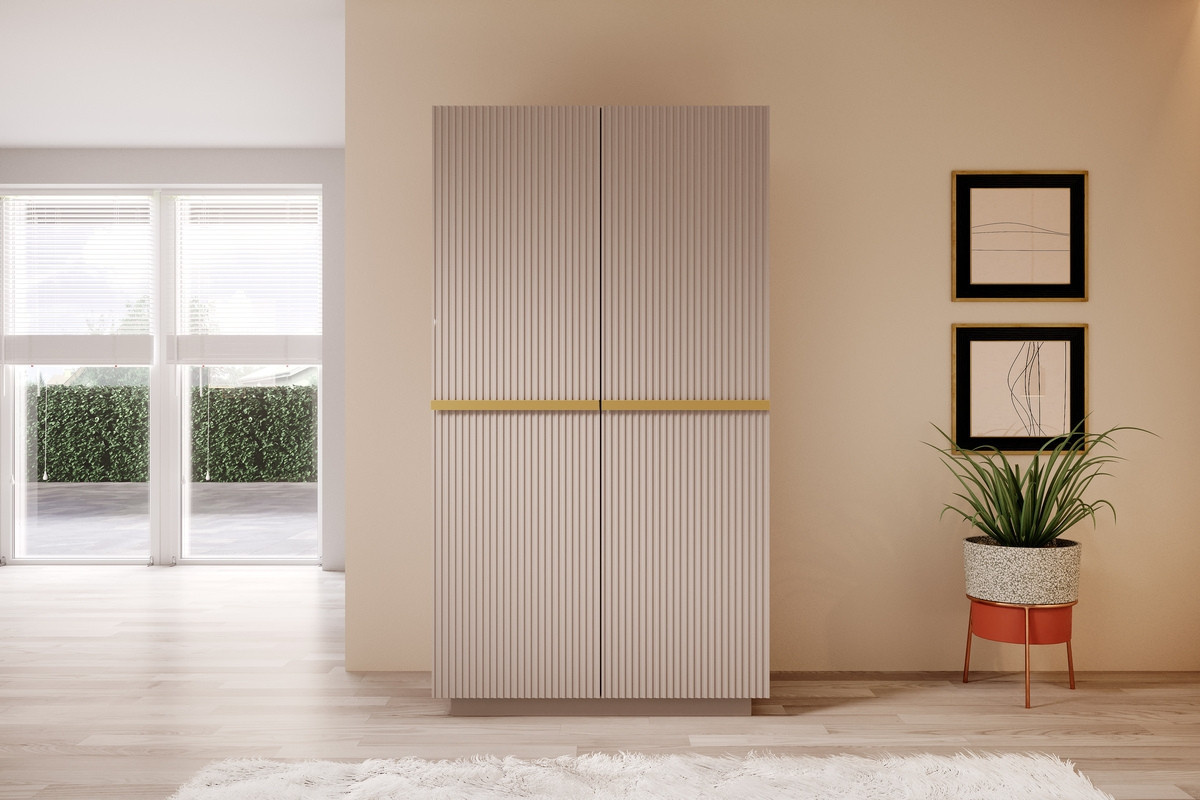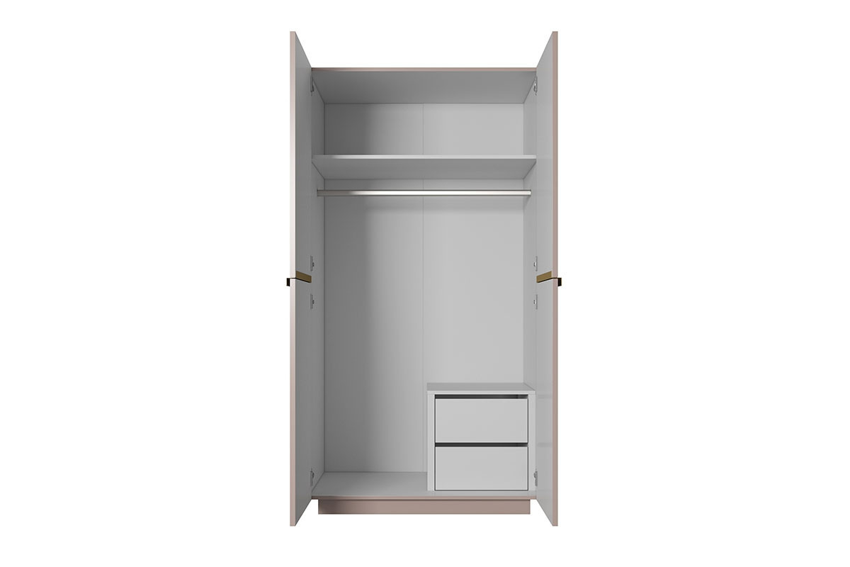 Šatní skříň Nicole 100 cm se 2 skrytými zásuvkami - starorůžová MDF / zlaté úchytky