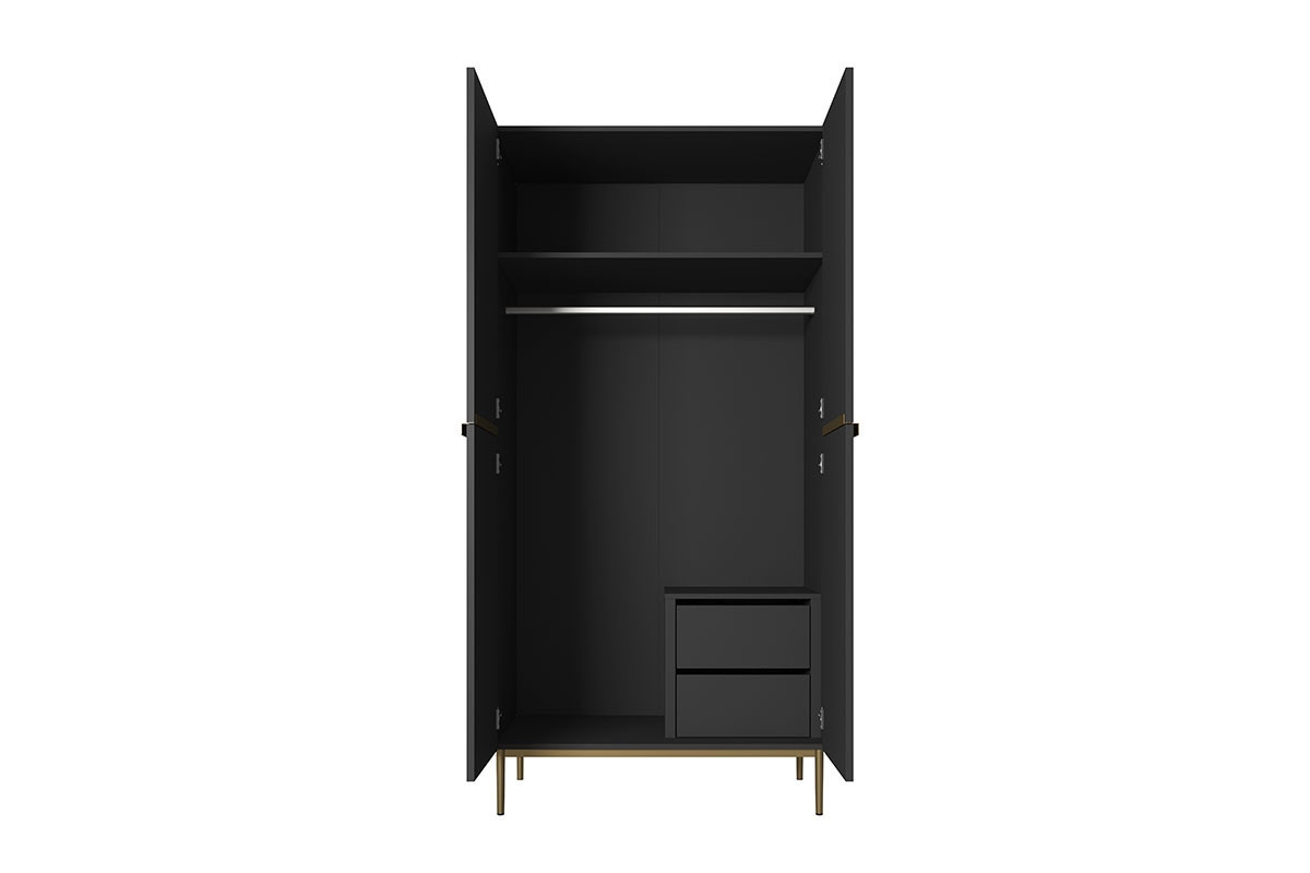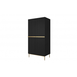 Skříň Nicole 100 cm se 2 skrytými zásuvkami - černý mat / zlaté nožky, Šířka: 100, Výška: 220, Hloubka: 62, Výška nožek: 20