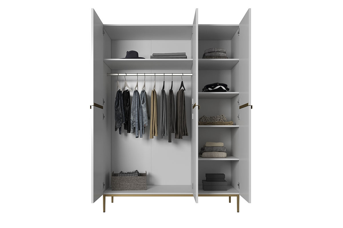 Šatní skříň Nicole 150 cm - bílá matná / zlaté nohy