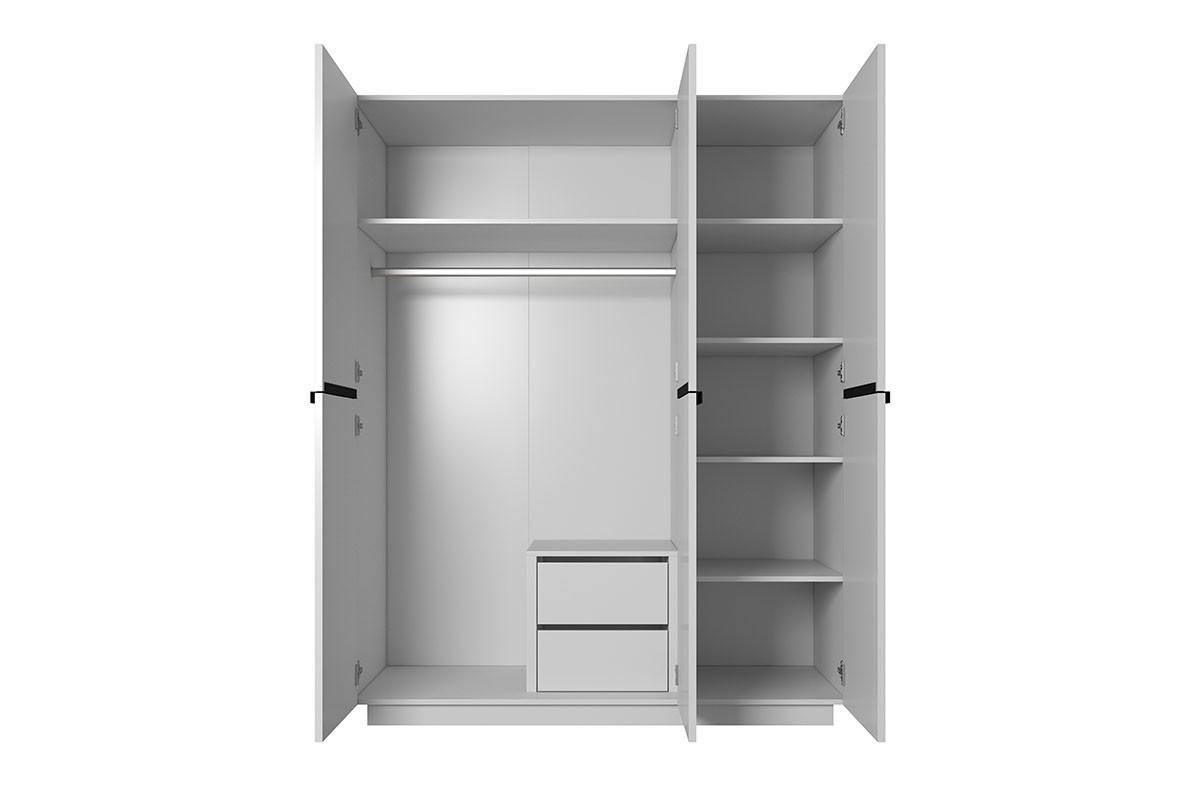 Skříň Nicole 150 cm se 2 skrytými zásuvkami - bílý mat / černé úchyty, Šířka: 150, Výška: 207, Hloubka: 62