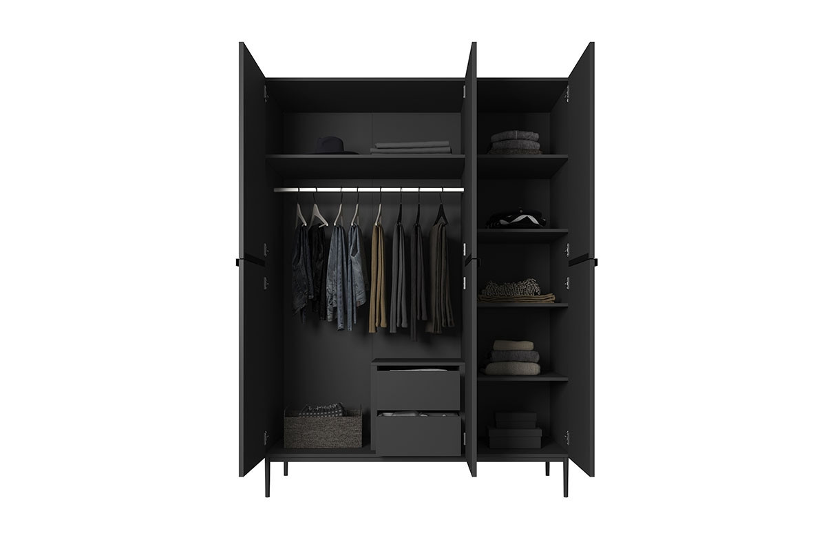 Skříň Nicole 150 cm se 2 skrytými zásuvkami - černý mat / černé nožky, Šířka: 150, Výška: 220, Hloubka: 62, Výška nožek: 20