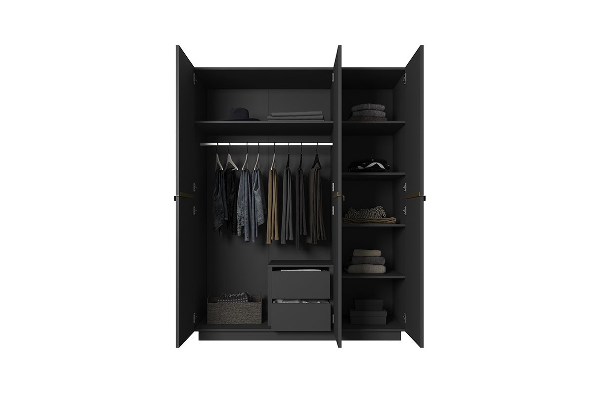 Šatní skříň Nicole, černý mat / zlaté úchyty